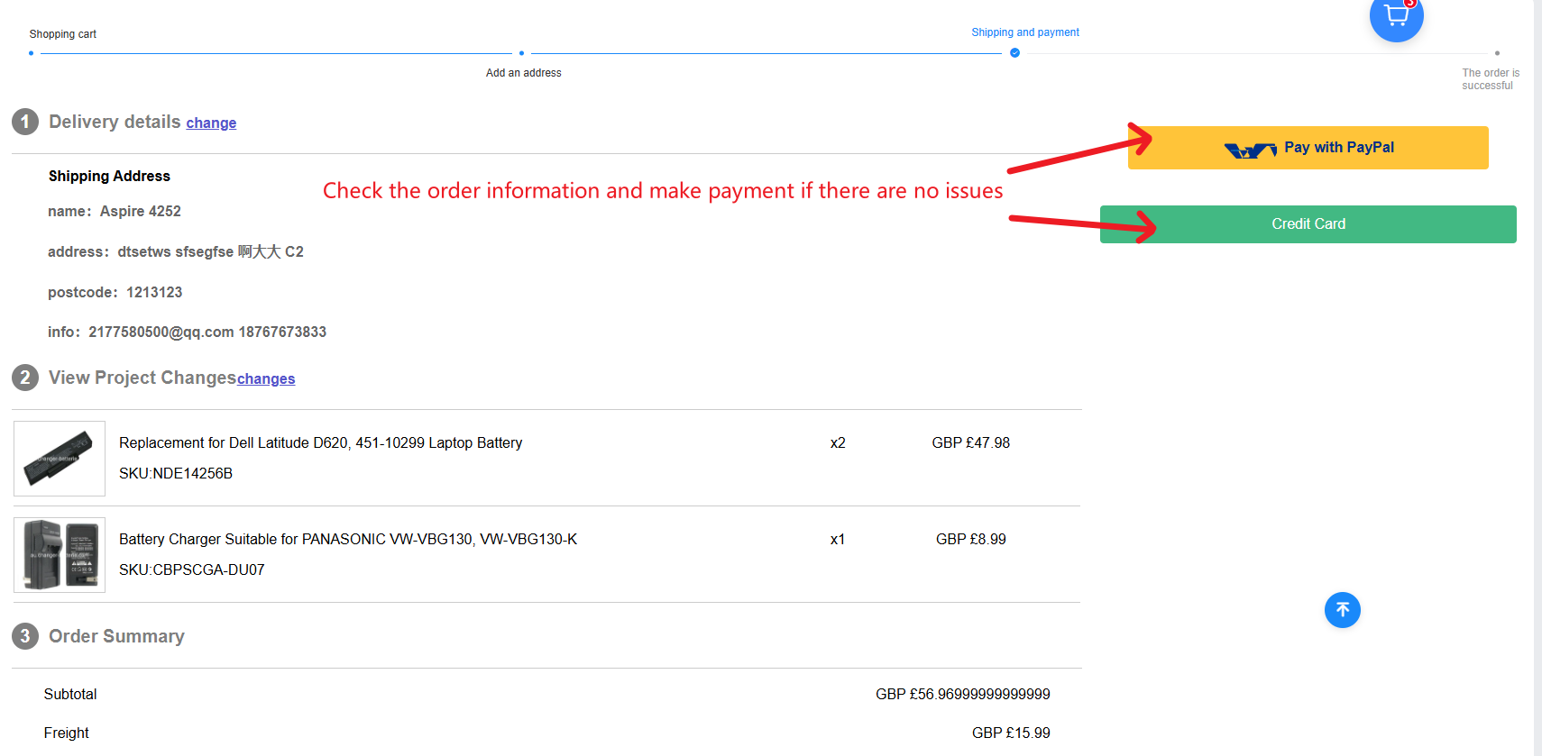- 4 Plus bas, vous devez confirmer les informations de la commande et finaliser le paiement.