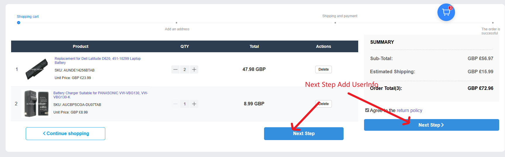 - 3 Ensuite, vous devez continuer et saisir les informations. Si vous avez des demandes spéciales, veuillez nous en informer dans les instructions de commande, par exemple : Il s'agit d'une commande de dropshipping.
